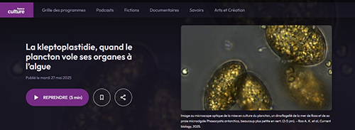 Johan Decelle, responsable de l'équipe Photosymbiose, revient sur une étude récemment publiée dans Current Biology et dévoile une interaction complexe chez le plancton marin, entre prédation et symbiose.
