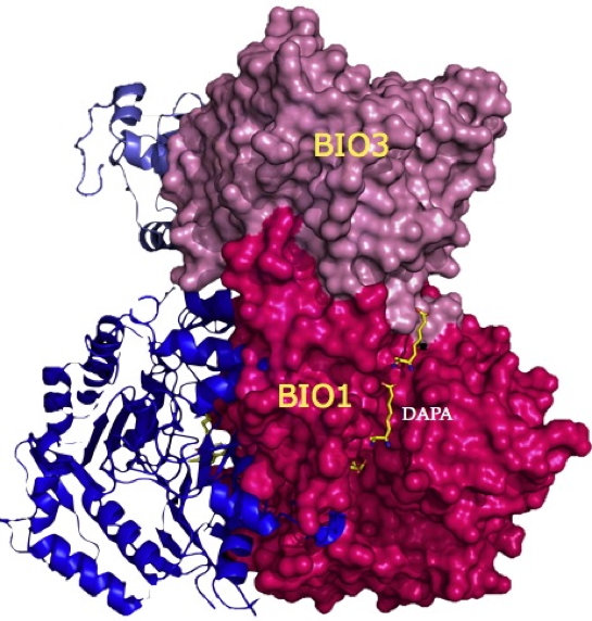 In collaboration with IBS, we have biochemically characterized the bifunctional enzyme BIO3-BIO1 from Arabidopsis and solved its three-dimensional structure. Data concerning bifunctional enzyme catalyzing (or not) two successive stages of the same biosynthetic pathway are rare. This study is therefore essential from a fundamental point of view, but will also improve the production processes of molecules with high added value. This will also, in a more targeted way, enable the design of specific inhibitors aimed at therapeutic or pesticide purposes.
